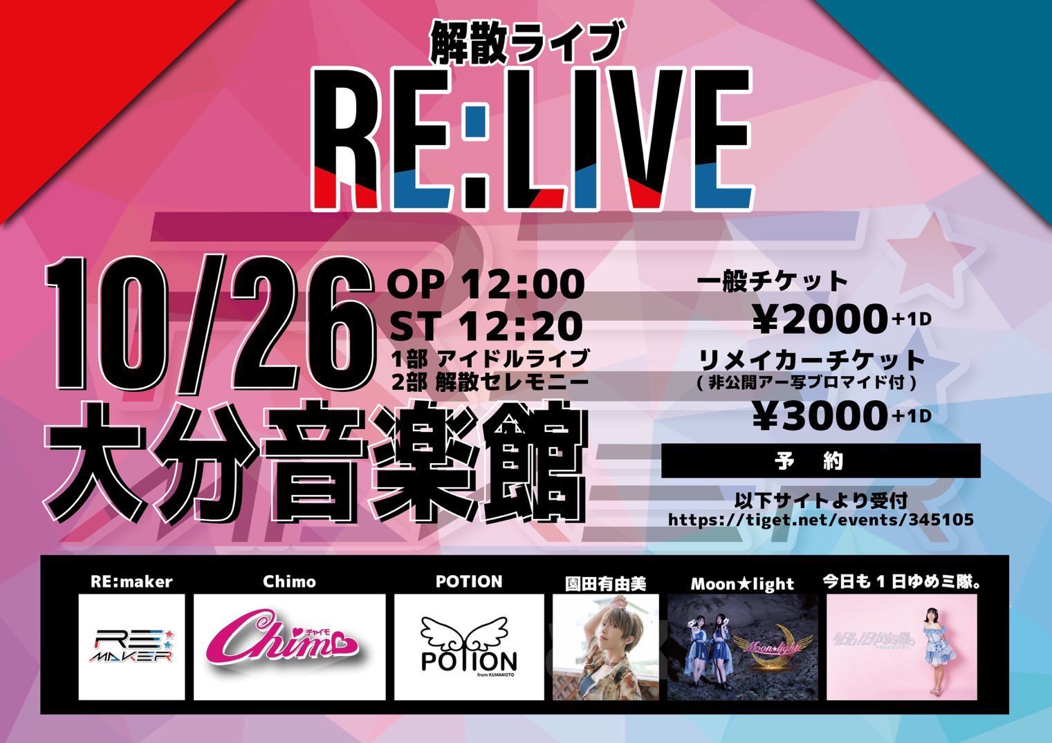 OP12:00/ST12:20<チケット>・一般¥2,000(+1ドリンク¥600)・リメイカーチケット¥3,000(+1ドリンク¥600)・当日+¥500<ゲスト>園田有由美POTIONChimoMoon☆light今日も1日ゆめミ隊。